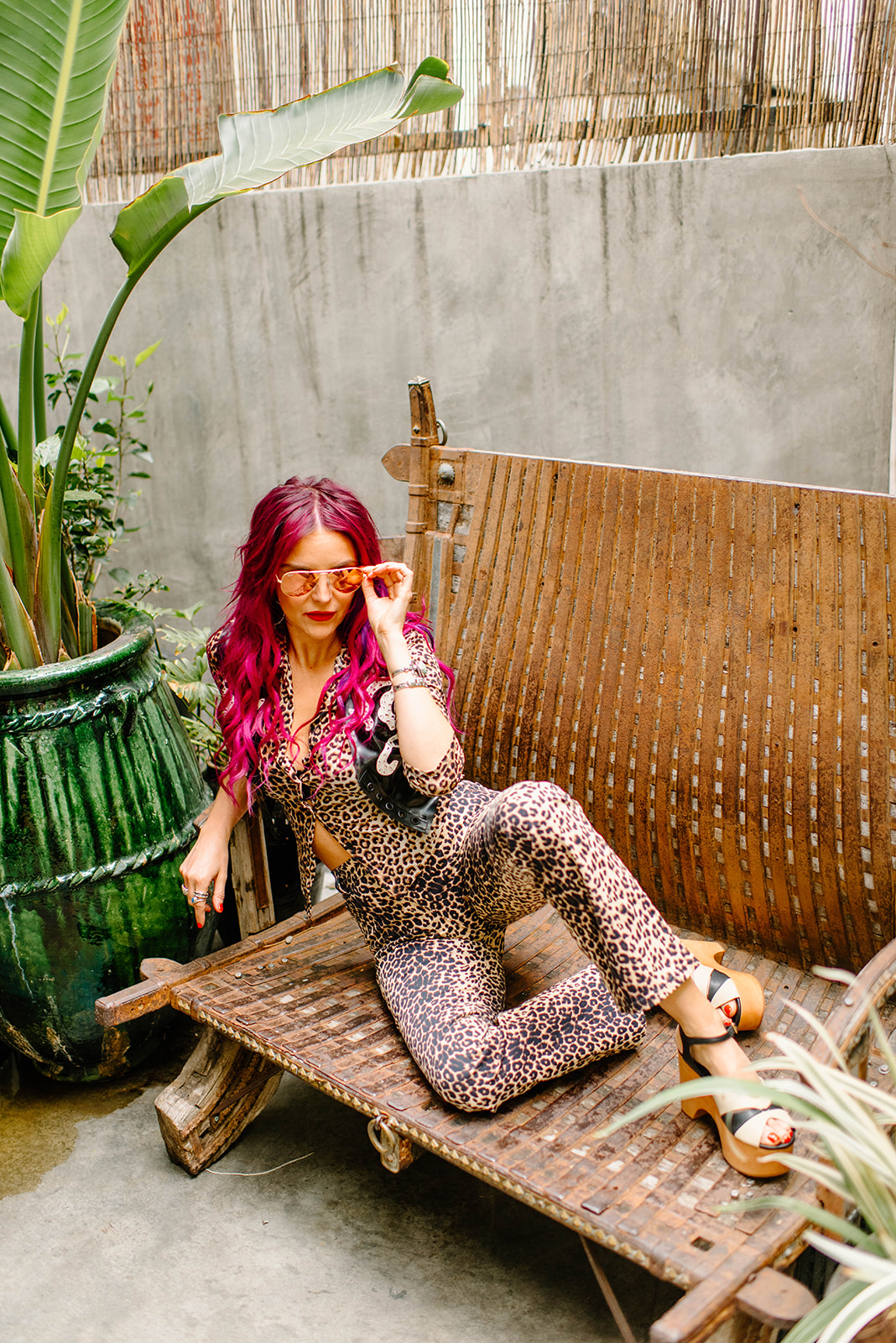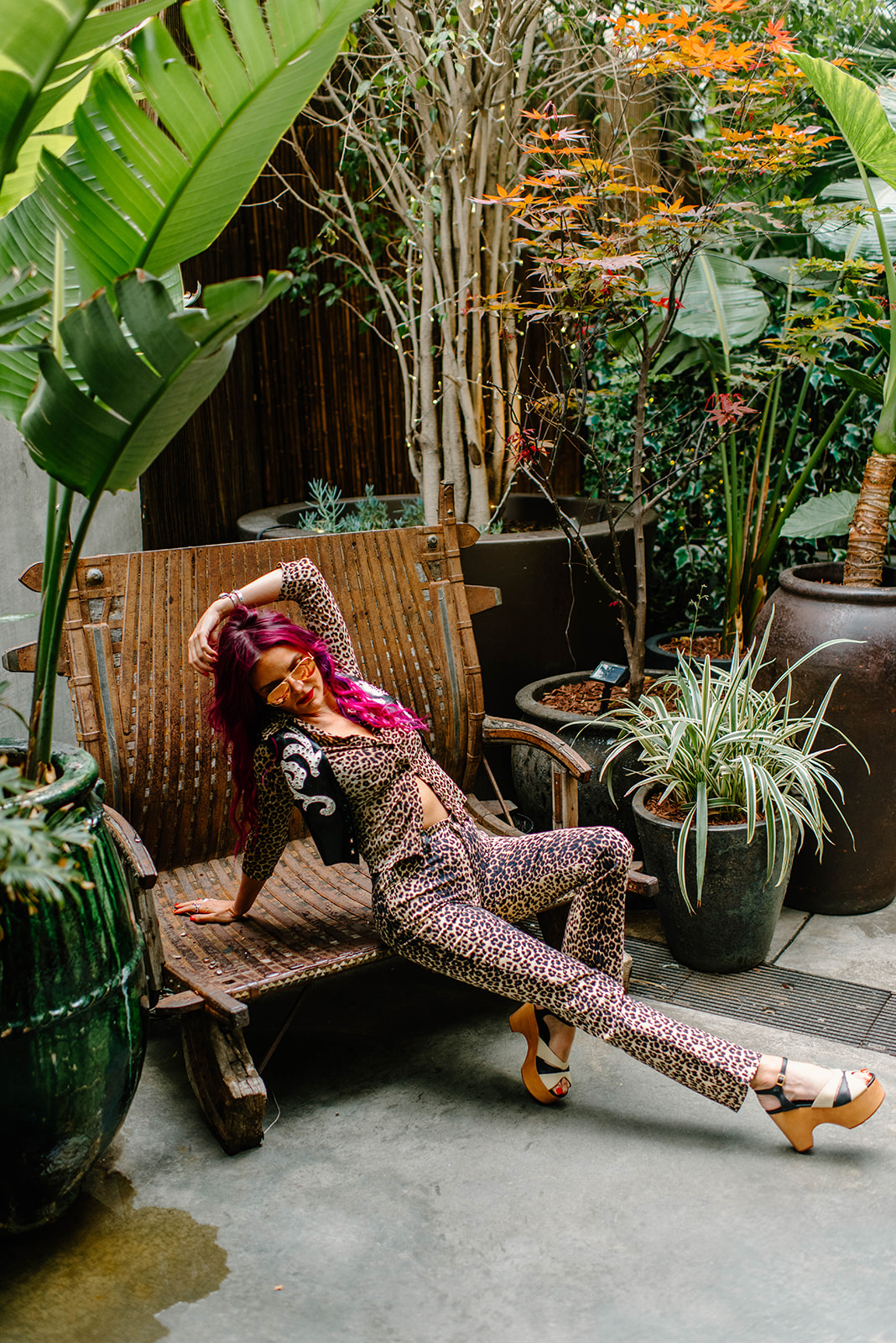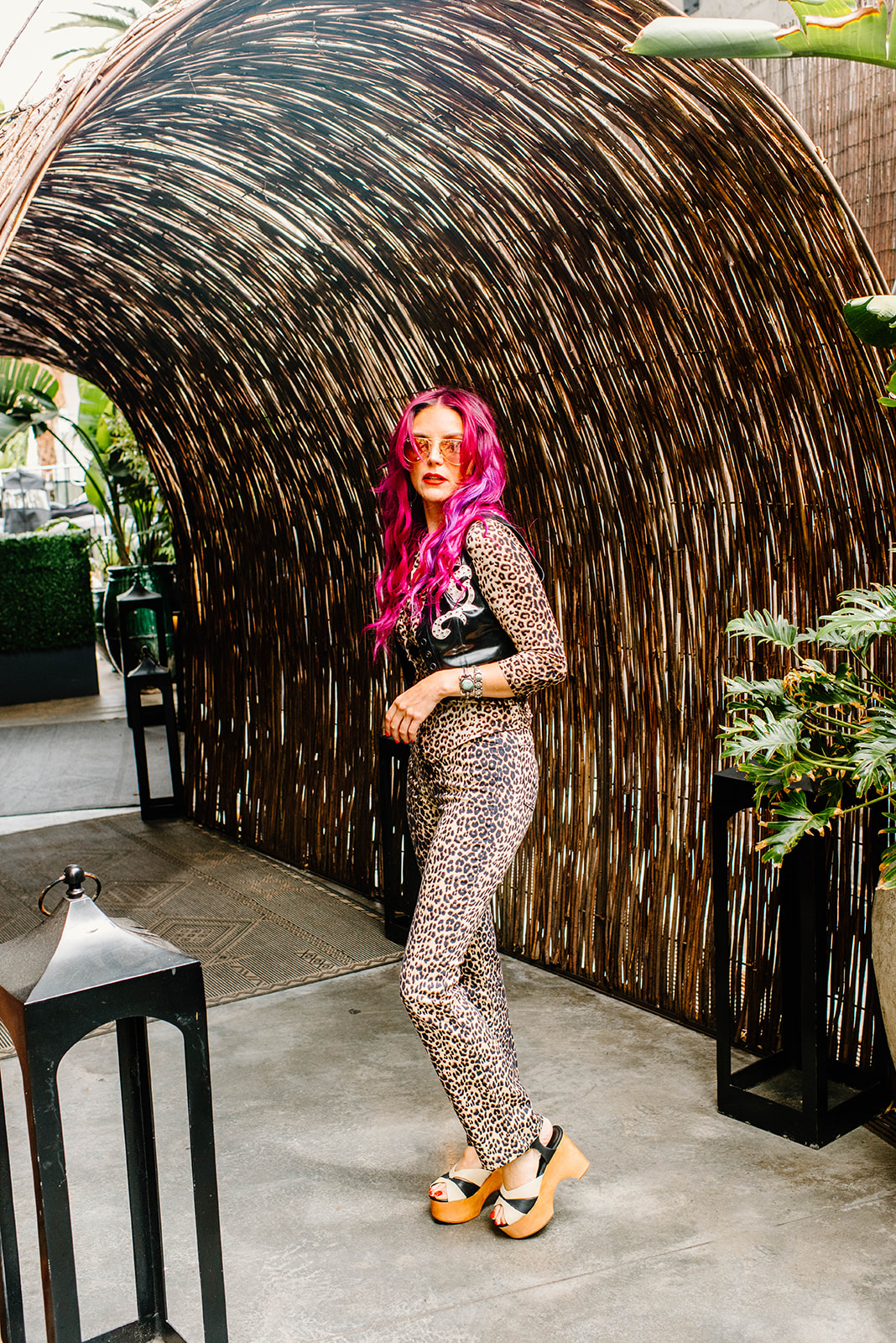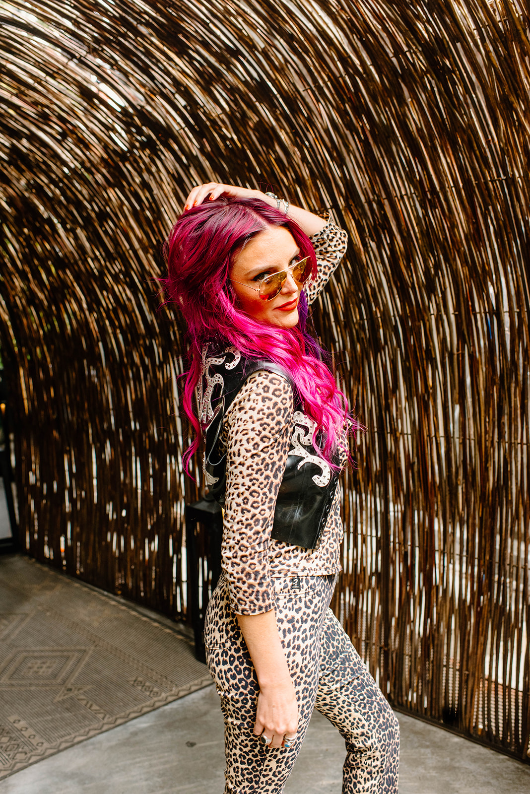 An early morning shoot in Hollywood. Just add a little lipstick, liner…and latex! Custom western latex magic, rhinestones, and leopard – it’s what rock n roll dreams are made of.